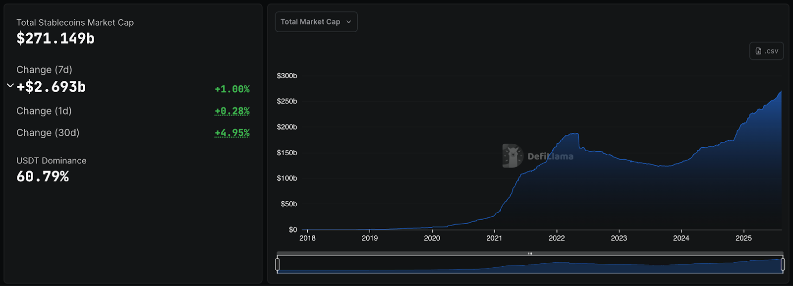 The stablecoin market has been on a steady upward trajectory, reaching a total market capitalization of $261 billion in July. As of August 12, the market cap has grown to $271 billion, with over $2.6 billion added in the past week alone. Tether remains the leader with a $164 billion market cap, followed by USD Coin at $63.6 billion, and Ethena USDe at $7.60 billion.