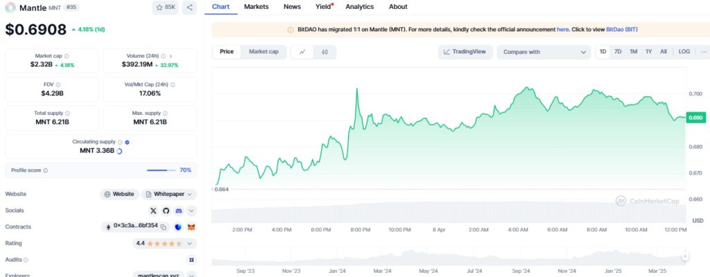 The fundamentals of Mantle are also looking strong, with a treasury of $3.8 billion and annual revenue of $67 million. These factors are bolstering investor interest in the project, making it an attractive proposition for those looking to get involved in the cryptocurrency space.